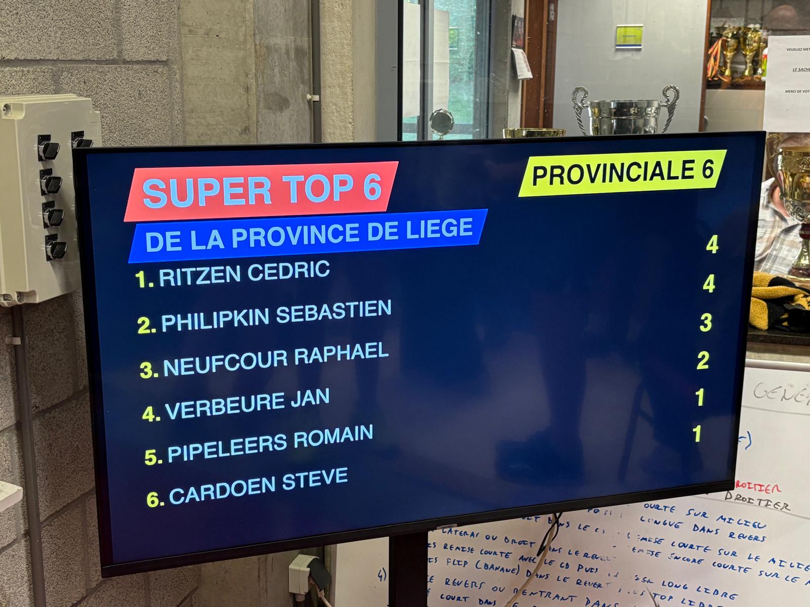 Am Samstagnachmittag nahm Cédric Ritzen (D6) am Super-Top-6-Turnier in Blegny teil. Der Jugendspieler, der sich durch seinen Erfolg im Mai beim Top-6-Turnier für das Super-Top-6-Event qualifizieren konnte, trat bei dieser Gelegenheit gegen die besten P6-Spieler aus den Kreisen Verviers, Huy-Waremme und Lüttich an. Das Nesthäkchen der Familie Ritzen erhielt durch seine Eltern und seinen Onkel und Coach Gary Ritzen die nötige mentale, aber auch sportliche Unterstützung. Trotz Anlaufschwierigkeiten - Cédric verlor sein erstes Spiel gegen Raphael Neufcour (E0/TTC Wolves Xhendelesse) - kämpfte sich unser Vereinsmitglied, das im Anschluss fehlerfrei blieb, zum Schluss vor Sébastien Philipkin (D6/TTC Jehay) auf den ersten Platz. Als Sieger des Super-Top-6-Turniers gilt Cédric nun als bester Spieler aller 6. Provinzklassen der Provinz Lüttich. "Es war eine schöne Veranstaltung. Cédric kann mächtig stolz auf sich sein", meint Vater Andy stolz.